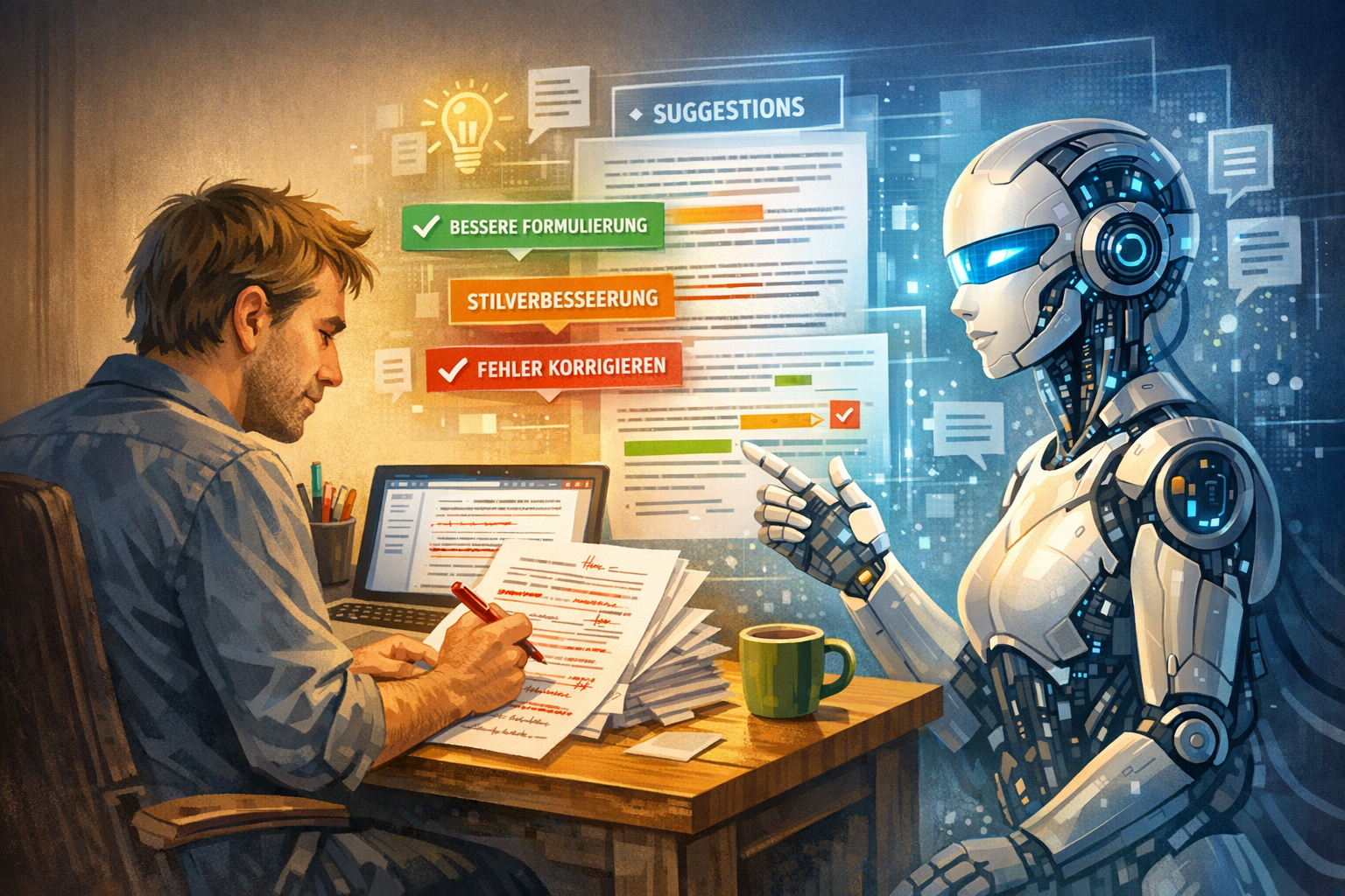 KI-gestützte Schreibwerkzeuge haben in den letzten Jahren enorme Fortschritte gemacht. Moderne Systeme können Texte nicht nur auf Rechtschreibung prüfen, sondern auch stilistische und strukturelle Aspekte analysieren.